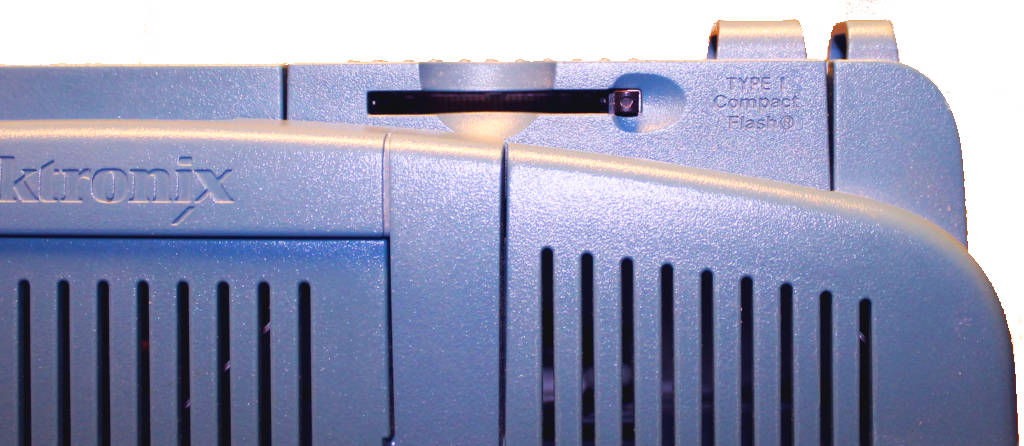 Das Bild zeigt die Aufbau und Funktionsweise eines Digitaloszilloskops. Das Messignal wird analog verstärkt und anschließend analog gefiltert. Dies ist beim Digitaloszilloskop notwendig, da die digitale Abtastung nach oben hin begrenzt ist (durch die Bandbreite des Oszilloskops). Kommen im Messsignal Frequenzen höher als die Abtastrate vor, würde die zu niedrige Abtastrate zu Fehlinterpretationen des Signals führen (siehe Alias-Effekt). Die eigentliche Abtastung erfolgt durch einen Analog-Digital-Wandler, der in fixen Zeiteinheiten das Signal erfasst und die Signalamplitude bestimmt. Die Frequenz der diskreten Abtastung muss ein Vielfaches der Signalfrequenz sein, um steile Flanken noch ordentlich erfassen zu können. Die Bandbreite eines Oszilloskops ist also ein wichtiges Kaufkriterium. Die Signalamplitude wird in diskrete Werte konvertiert. Ein 10-Bit A/D-Wandler kann 2^10 Signalstufen, also 1024 verschiedene diskrete Werte darstellen. Ein 8-Bit A/D-Wandler kann hingegen nur 256 verschiedene Stufen darstellen. Eine hohe Bitzahl des A/D-Wandlers ist also vorteilhaft. Die so digitalisierten Daten werden in einen Speicher geschrieben. Ein Prozessor liest die Daten dann aus und stellt sie auf einem Display dar. Da die Daten ohnehin im Speicher liegen, lassen sich diverse Algorithmen wie FFTs oder sonstige mathematischen Operatoren darauf anwenden. Außerdem können die Daten auf einem USB-Stick, Compact-Flash oder einer SD-Karte abgespeichert werden, sofern das Oszilloskop das unterstützt. Für ältere Oszilloskope gibt es Adapter von Compact-Flash auf SD-Slot. Somit lassen sich auch die neueren SD- oder Micro-SD-Karten in den Geräten nutzen.